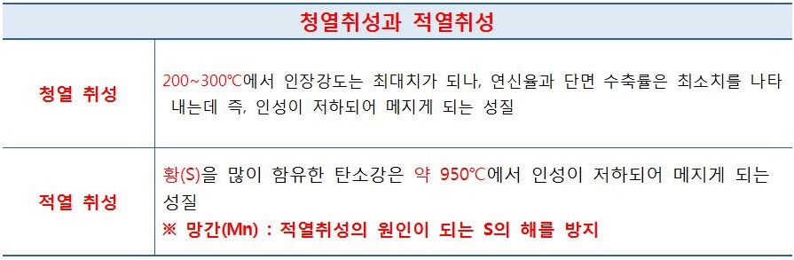 ❸ 청열 취성 ④ 탄소강 충격값