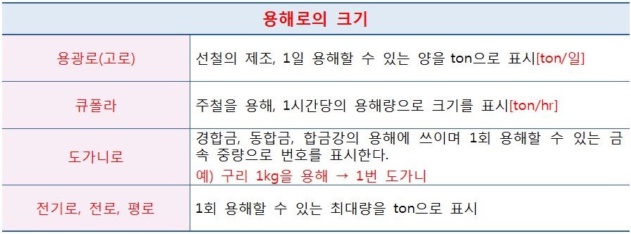 ① 매 시간당 용해톤(ton)수 ② 1일 총 용해 톤(ton)수