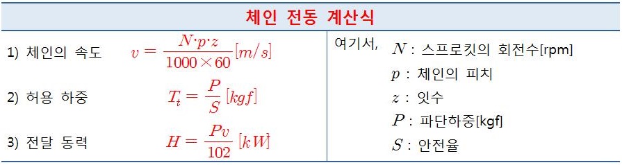 7. 롤러 체인 전동에서 체인의 파단하중이 1.96kN이고, 체인의 회전속도가 3m/s이며, 안전율(safety