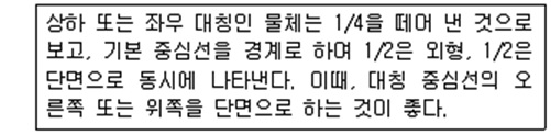 11. 한 쪽 단면도는 대칭 모양의 물체를 중심선을 기준으로 얼마나 절단하여 나타내는가?
