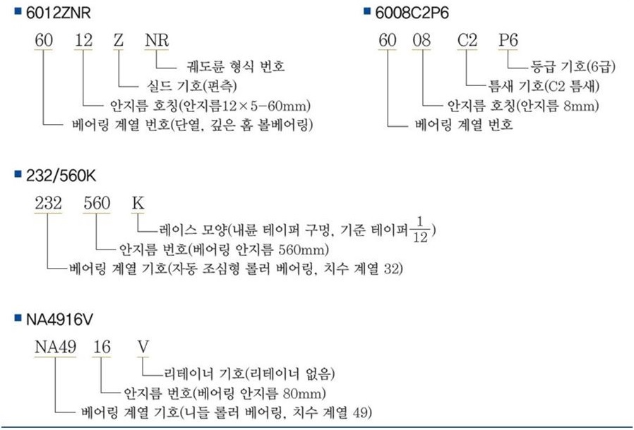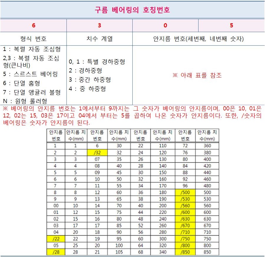❷ 안지름 치수가 11, 13, 15, 17㎜인 경우 안지름 번호는 각각 00, 01, 02, 03으로 표현한다.